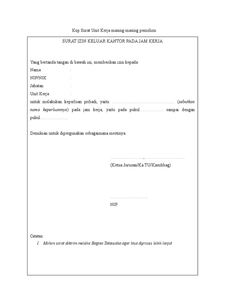 Surat Izin Keluar Kantor Pada Jam Kerja